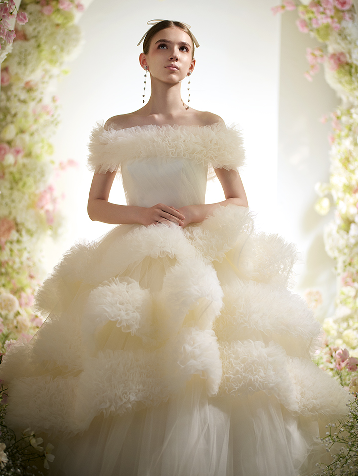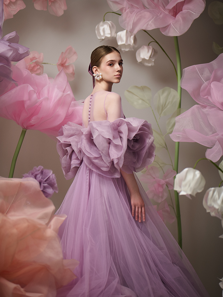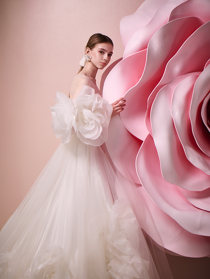 KIYOKO HATA signatureのドレスは華やかさと繊細さをまとい