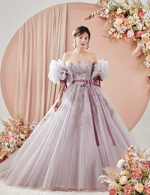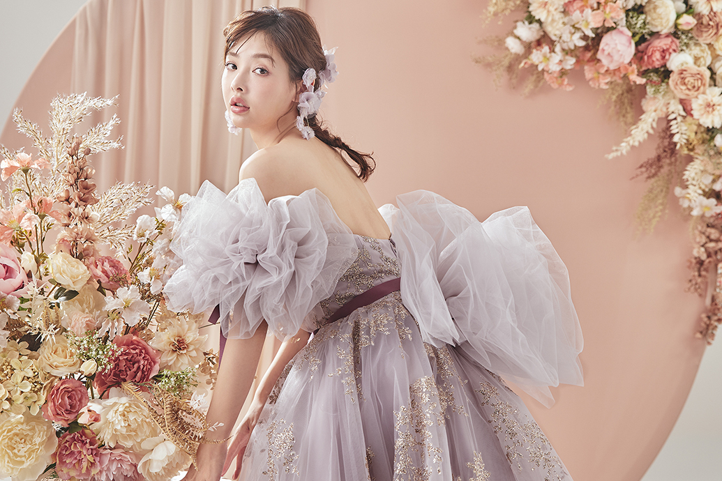 【Lulu felice(ルルフェリーチェ)】繊細なカラーリングから成す透明感。一粒から拘ったグリッターの輝きはLuluFeliceのエッセンス。纏った瞬間に心ときめく憧れの花嫁姿を叶えます。スタイリングにもトレンドを取りいれ今の時代を生きるあなたへフィットするドレスコレクション。
