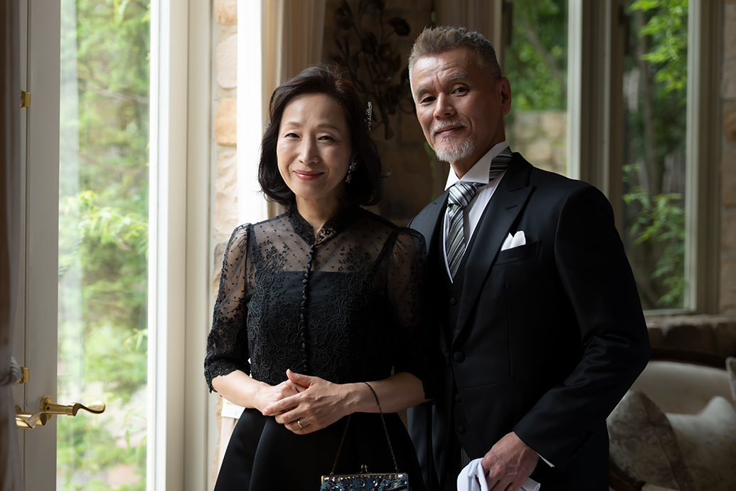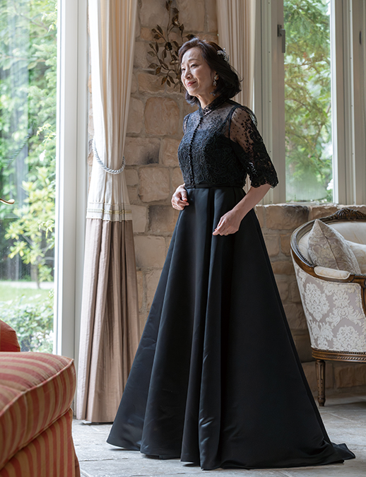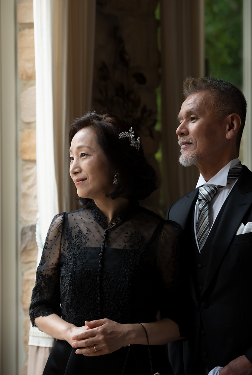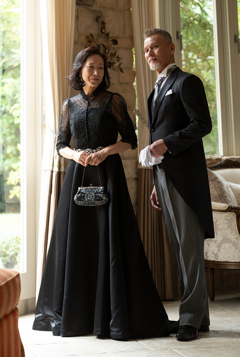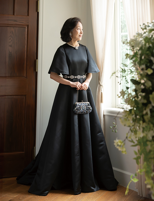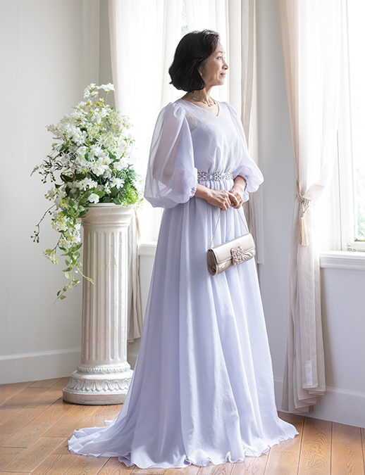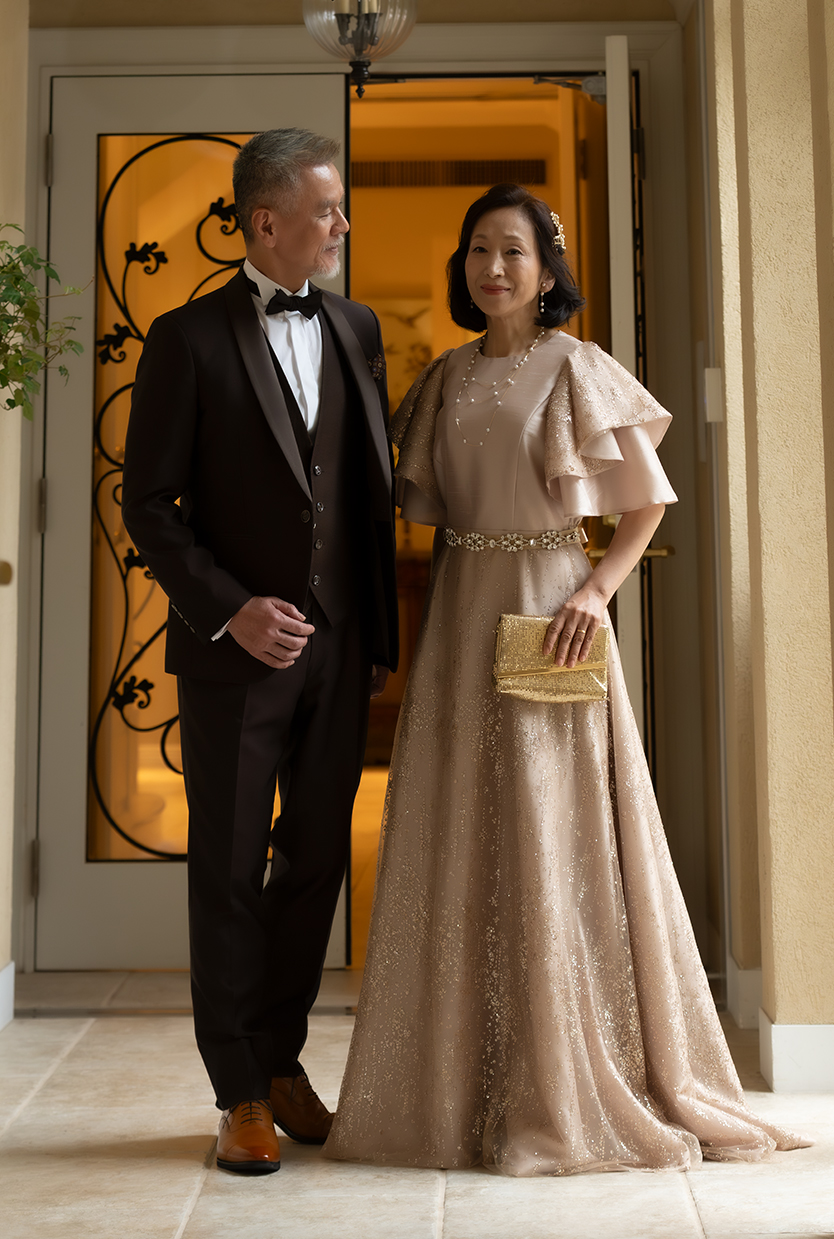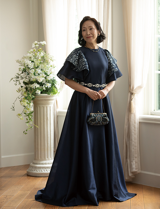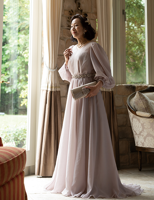 【マザードレス】月を見上げてかけがえのない家族の永遠の幸せを願う…。大切な子供の門出を祝う日に、お母さまたちも輝くドレスを着こなしていただきたい。クラス感のあるドレスで特別な時間を思い出として紡ぐ。